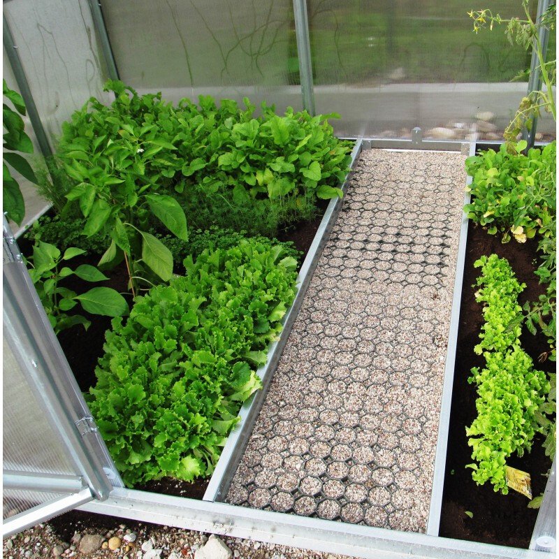 Drivhusbedkant av 2 galvaniserte stålprofiler som er 10 cm høye (komplett med monteringsbraketter og skruer), som lar deg separere drivhusets midtpassasje fra bedene på siden.